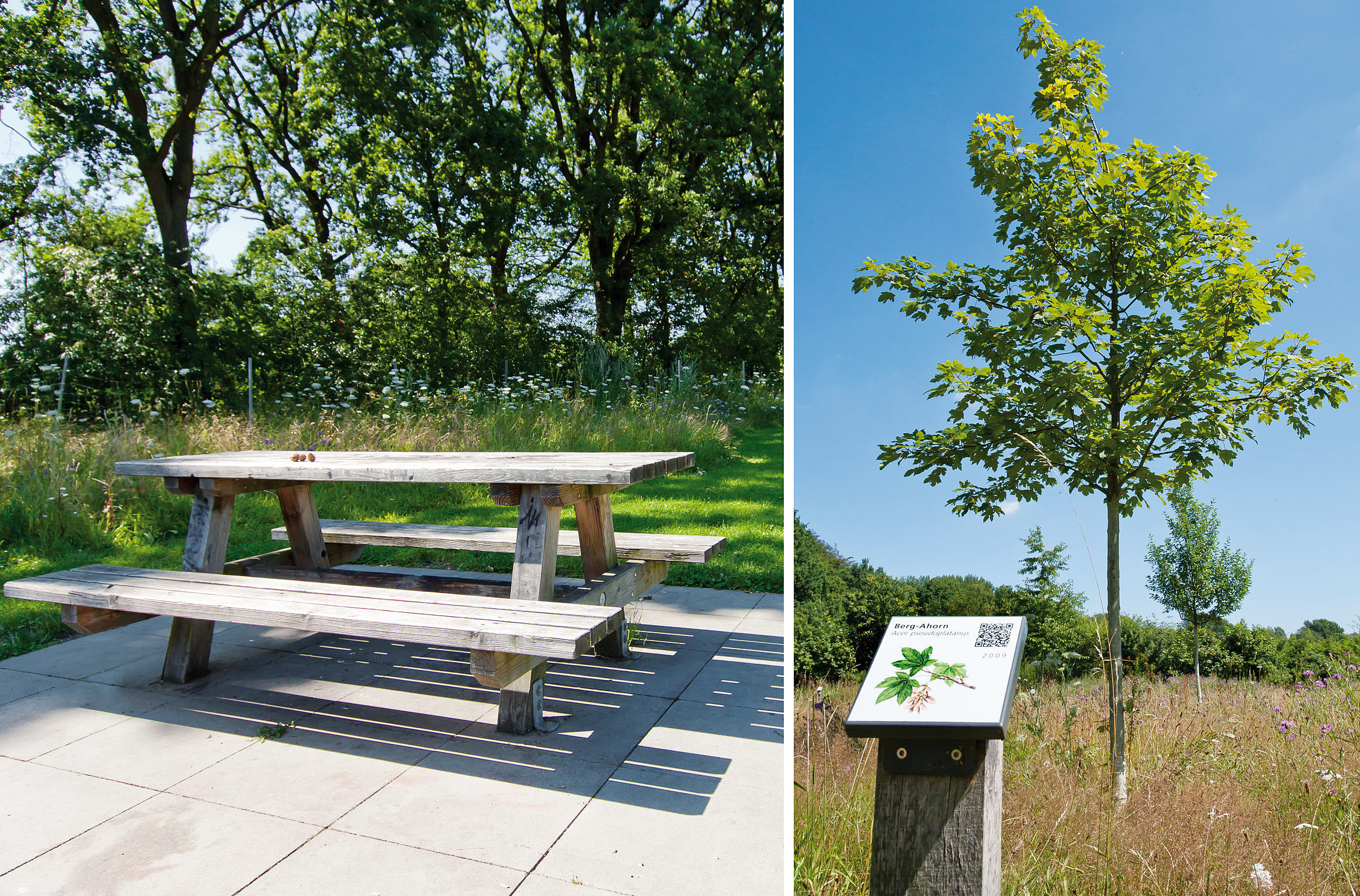 Bei der Planung wurden die Bäume im Gelände so angeordnet, dass sie natürliche Baumgemeinschaften nachahmen, z.B Erlen und Weiden als „Gehölze der Auenlandschaft“. Die Wegeerschließung ist barrierefrei angelegt worden, so dass z.B. auch Menschen mit Rollstuhl den Baumpark selbstständig erkunden können.