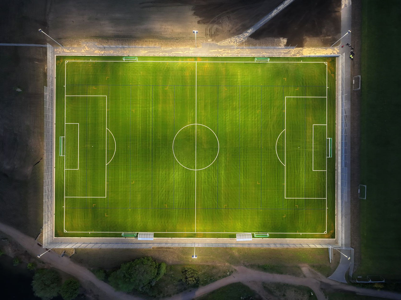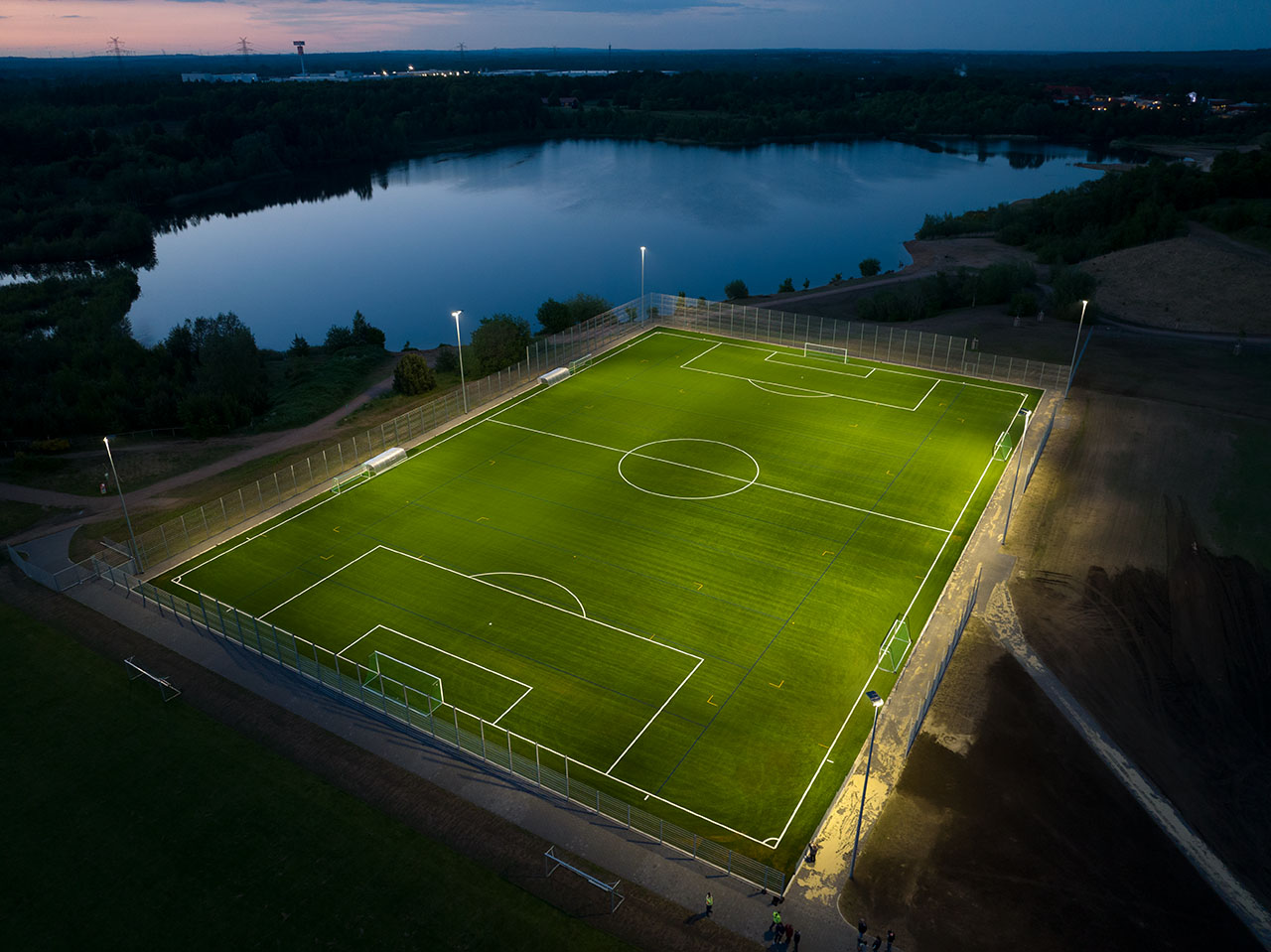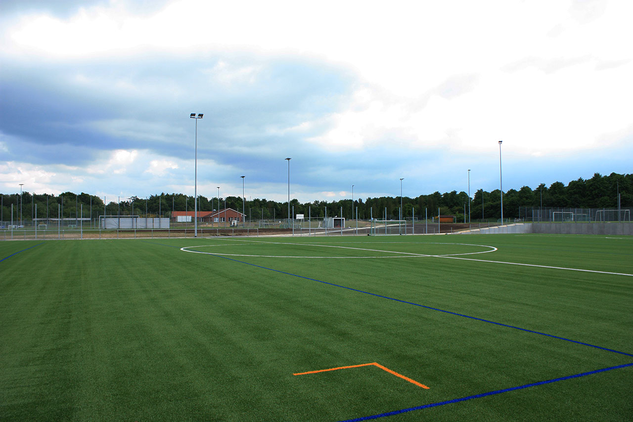 Wir entwickelten die Vision von einem Freizeitverbund der Sportstätten als großformatige Landschaft mit dem nahe gelegenen See und Wanderweg, um viele Kaltenkirchener in die Nutzung zu involvieren. Ab 2018 sind vier Großspielfelder sowohl mit Natur- als auch mit Kunstrasen realisiert worden, eine barrierfreie Wegeverbindung zum Clubheim geschaffen worden und der Anschluss zum See- und Wanderweg mit insekten- und vogelfreundlichen Neupflanzungen von über 6000 Sträuchern und 10 Solitärbäumen umgesetzt worden.