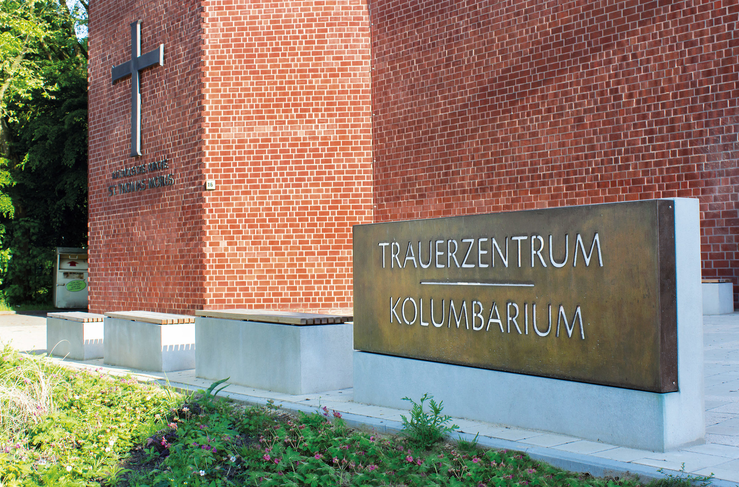 Als übergeordnetes Thema der Gestaltung dieses Trauerzentrums oder Kolumbariums wurde das Miteinander von Leben und Tod gewählt.