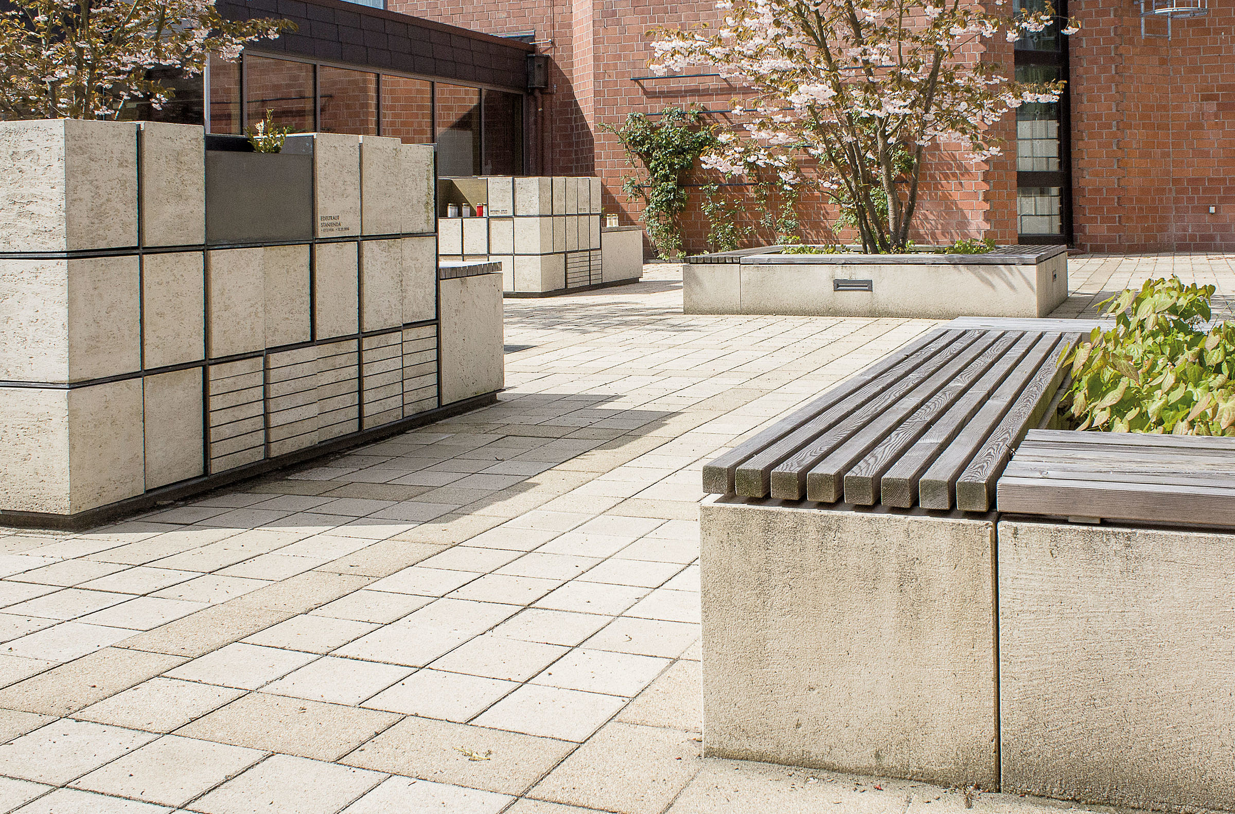 Im Gartenhof ist durch uns ein heller Raum aus Stein und Pflanzen gestaltet worden.