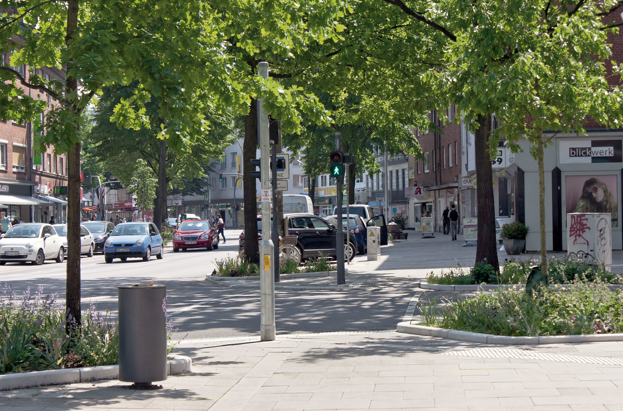 Durch die Umgestaltung wurde dieser Charakter weiter gestärkt und den Fußgängern eine höhere Priorität zugeteilt. Pflasterinseln mittig der Fahrspuren helfen den Passanten sicher die Seiten zu wechseln. Durch das Verlagern der Radwege auf die Straße wurde die Radfahrbeziehung in Richtung Innenstadt gestärkt. Besonders im ersten Bauabschnitt zwischen Schulweg und Heußweg wurde viel Wert auf den Erhalt der alten und charakteristischen Baumbestände gelegt. Die Standorte wurden optisch und funktional deutlich aufgewertet. Im zweiten Bauabschnitt wurden zwei Minikreisel realisiert, die dafür sorgen den Verkehr zu endschleunigen aber dennoch einen gleichmäßigen Verkehrsfluss gewährleisten. Schon mit Beginn der Planung wurden die Bürger intensiv einbezogen und konnten in Bürgerbeteiligungen ihre Wünsche und Zweifel äußern und so aktiv an der Umgestaltung mitwirken. Der stetige Austausch und die Kontaktpflege zu den Anliegern und Interessensgemeinschaften zog sich über die gesamte Planungs- und Bauphase hinweg, sodass die meisten Zweifler letztendlich doch von dem gelungenen Projektumbau Osterstraße überzeugt werden konnten.