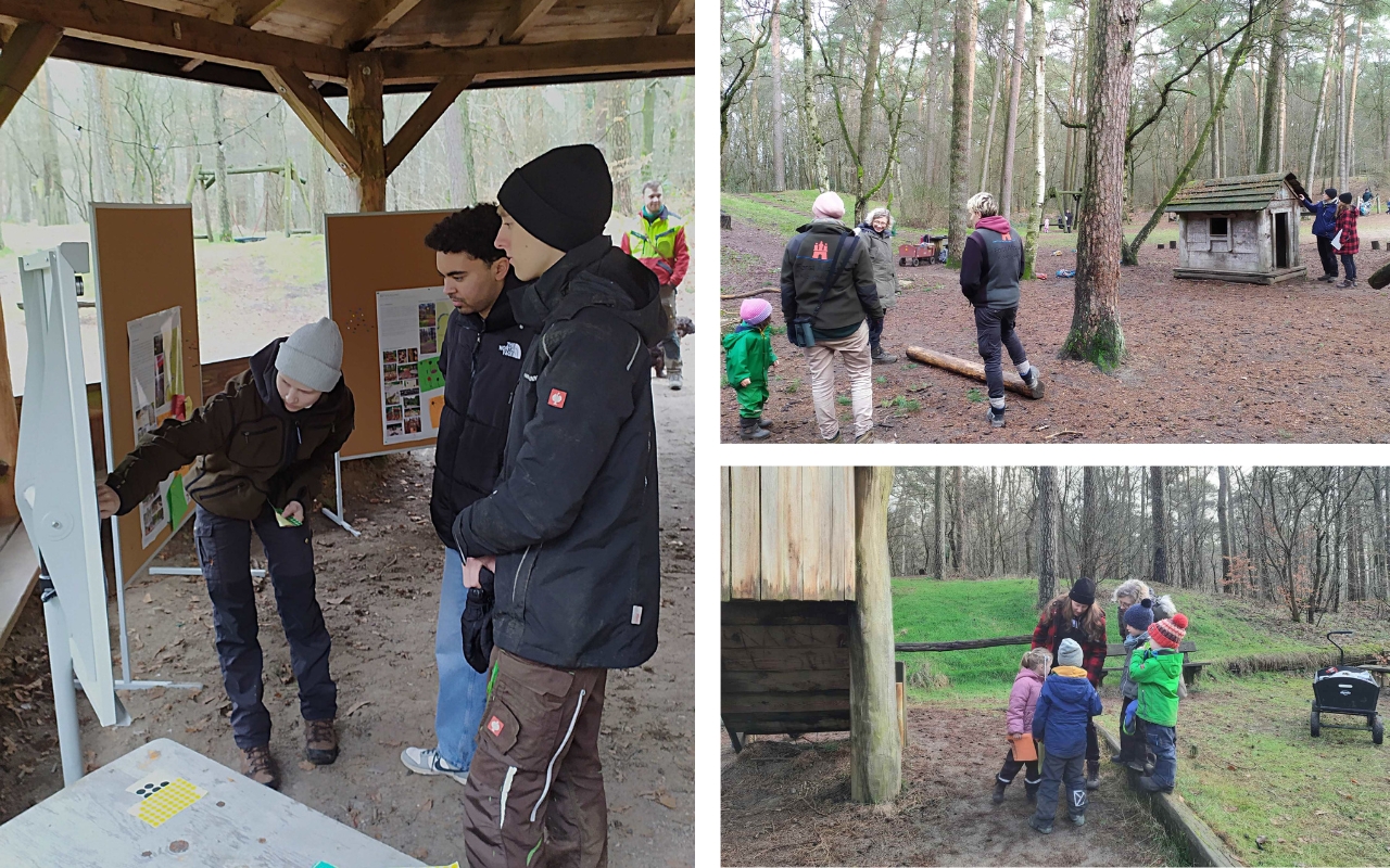 KITA-Gruppen vom Sozialen Träger SterniPark, die fast jeden Tag den Waldspielplatz nutzen, das in der Nähe ansässige Kinderhospiz Sternenbrücke und weitere Anwohnende und Nutzer*innen des Waldspielplatzes kamen vorbei und brachten ihre Ideen und Wünsche ein. Das hat uns sehr gefreut und Spaß gebracht! Über den Briefkasten am Wildgehege Klövensteen konnten zusätzlich Ideen und Anregungen eingebracht werden.